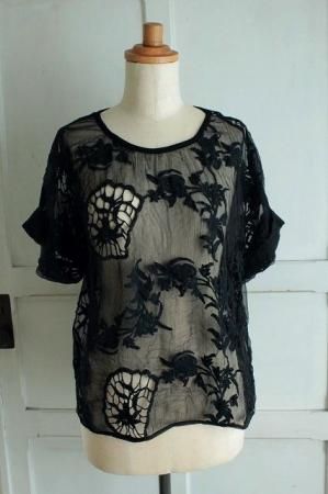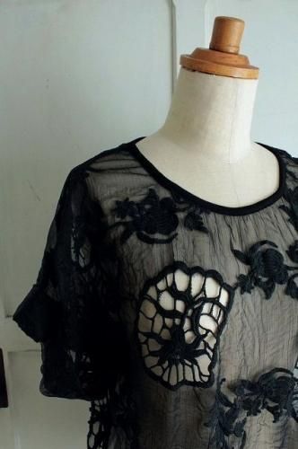 全体に施された繊細なお花の刺繍とカットワークが魅力的です。
