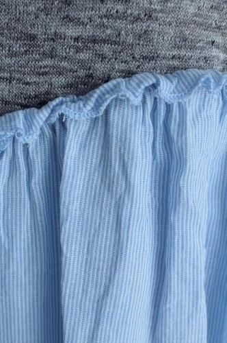 スカート部分はストライプ柄の薄手のコットン生地の異素材の組み合わせ。