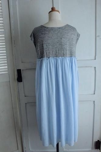 inaリネンニット切替ワンピースGY×SA