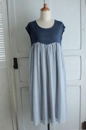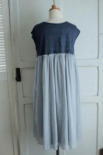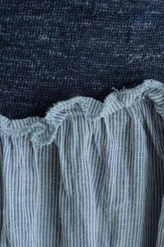 スカート部分はストライプ柄の薄手のコットン生地の異素材の組み合わせ。