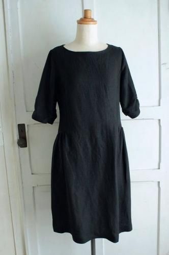 inaシャーリングスリーブワンピースBK