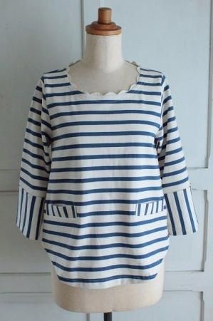 nesessaire 襟ぐりスカラップボーダープルオーバーBL