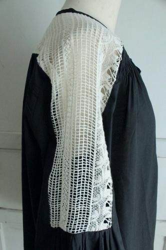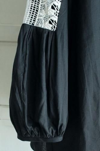 胸元のレース下にタック、肩にはゴムの入った絞りギャザー。