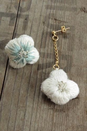 リネン生地に光沢感のある糸で刺繍が施された繊細なお花。