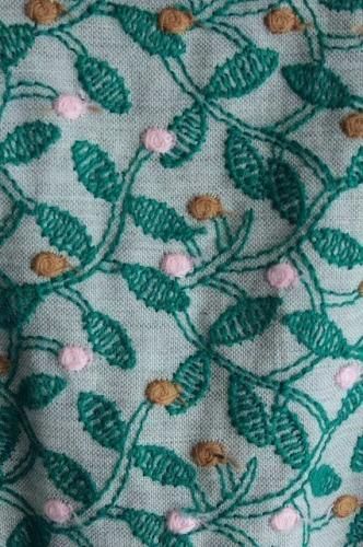フロント部分はつぼみと葉っぱの刺繍が贅沢に施された