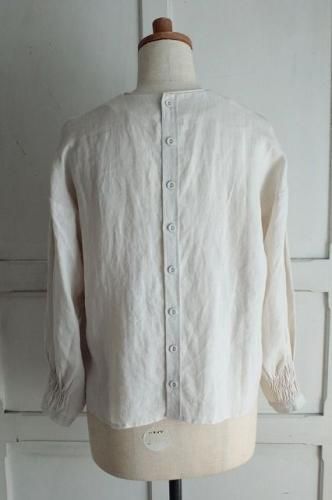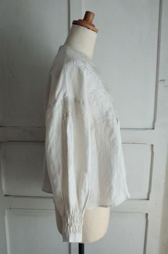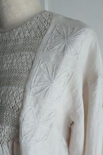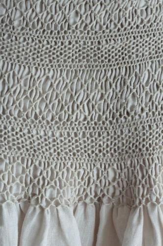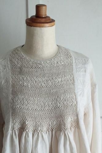 フロント・腕・袖口に贅沢に施されたハンドスモッキング刺繍に
