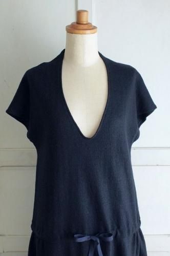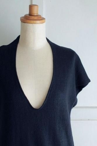 すっきりとした印象の大きく開いたVネックに短めのフレンチスリーブ。