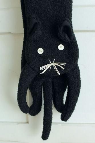 ボタンの目に刺繍の鼻とヒゲ、長い手足としっぽが魅力的です。