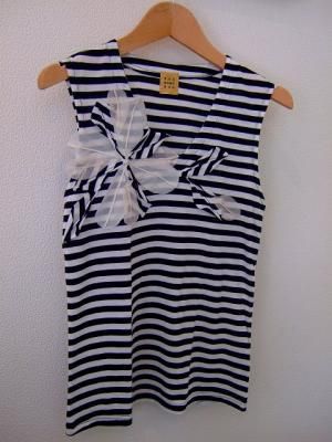 カラー アイボリー、ブラック、 素材 コットン 50%、モダール 50% (別布コサージュ部分 ポリエステル 100%) サイズ 着丈 54cm、バスト76cm、ウエスト74cm、