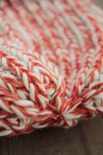 太さの異なる2色の毛糸をミックスして