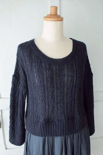 トップはケーブル編みのモヘアニット。