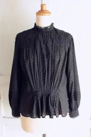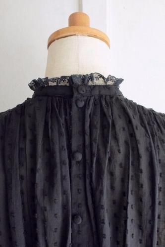 袖口のタック・背中のボタンとギャザーがアクセント。
