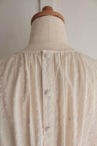 袖口・裾のタック・背中のボタンとギャザーがアクセント。