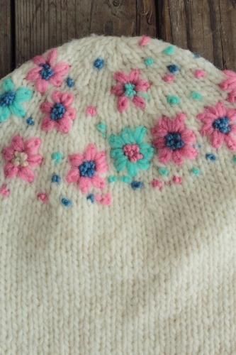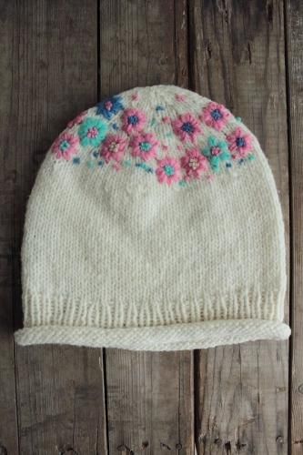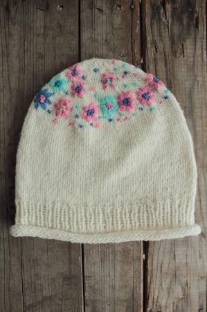 made in Peruフラワー刺繍ニット帽WH