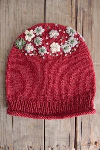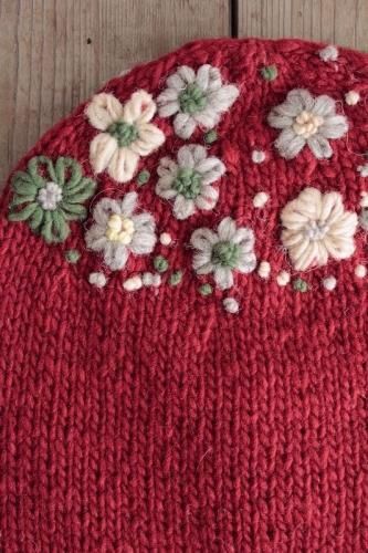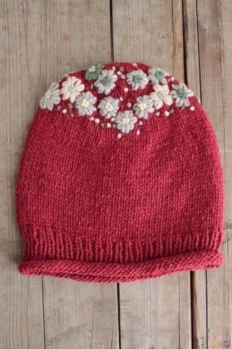 頭のてっぺんに施されたお花のハンド刺繍が魅力的です。