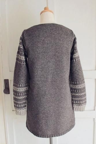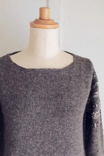 飾り編みが施されたボーダー柄の袖が魅力的です。