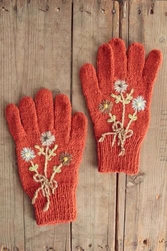 made in Peruフラワー刺繍手袋OR