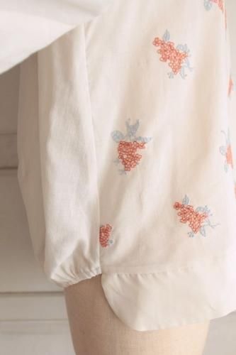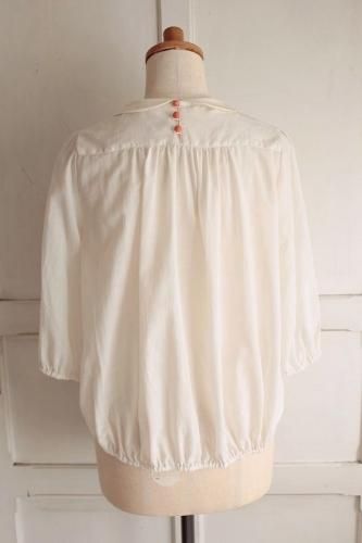 フロント裾の切替し・背中のくるみボタンがアクセント。