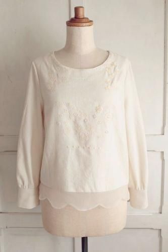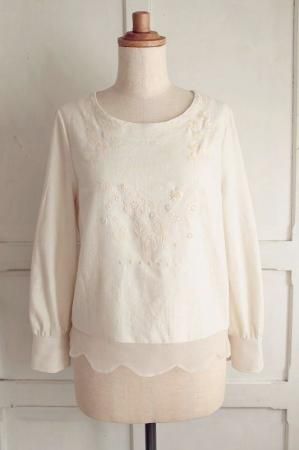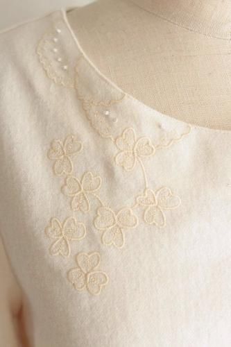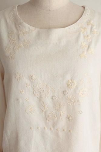 首周り・フロントに施されたお花の刺繍が魅力的です。