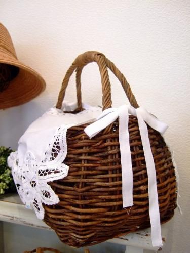 カラー ナチュラル、ホワイト 素材 コットン、籐、 サイズ 20cm×24cm、高さ 25cm、※こちらの製品は手刺繍、手編み、デッドストックのハンカチやクロスを使用したリメイク商品です。多少の傷や汚れはご了承下さいませ。製品洗い仕上げをしておりますが、お取り扱いはやさしく手洗い後タオルドライ陰干し、またはドライクリーニングに出されることをお勧め致します。天然素材ですので、多少の欠けや変色などは予めご了承下さいませ。