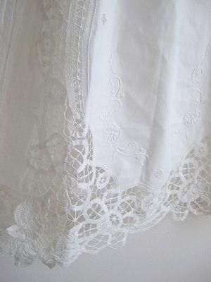 カラー ホワイト 素材 コットン 84%、リネン 16%、 サイズ フリー、着丈 55cm、※こちらの製品は手刺繍、手編み、デッドストックのハンカチやクロスを使用したリメイク商品です。多少の傷や汚れはご了承下さいませ。製品洗い仕上げをしておりますが、お取り扱いはやさしく手洗い後タオルドライ陰干し、またはドライクリーニングに出されることをお勧め致します。