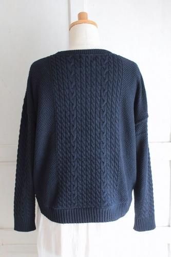 color ネイビー 素材 コットン100% made in Japan size M 着丈50cm、バスト112cm 袖丈56cm(切替しより44cm)、肩幅38cm