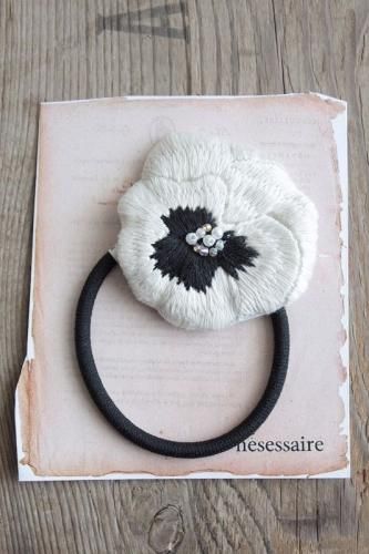 nesessaire パンジーハンド刺繍ヘアゴムIV