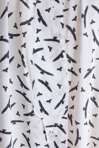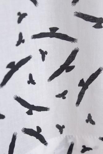 鳥が羽ばたいている柄のプリントが魅力的です。