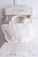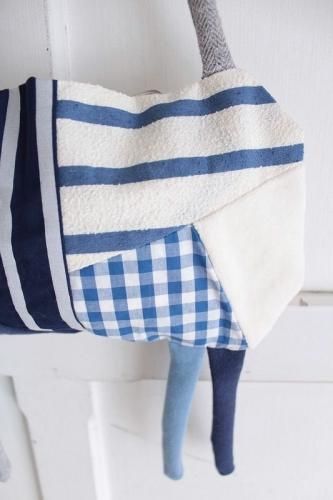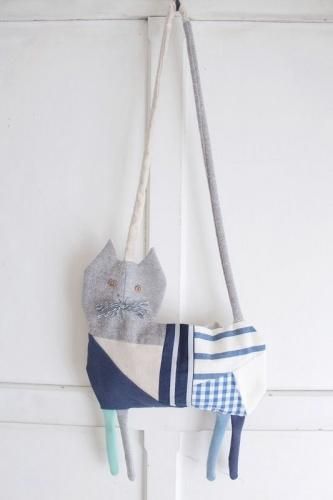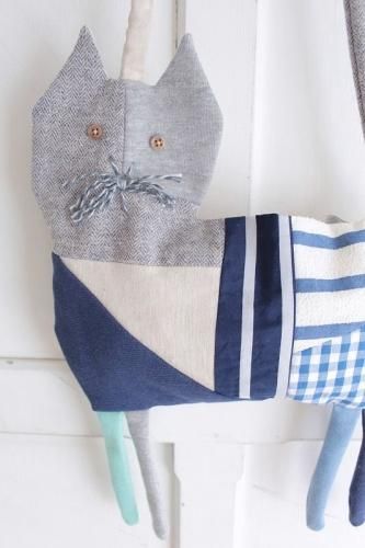 ボタンの目とグレーとオフの2色の糸のヒゲに