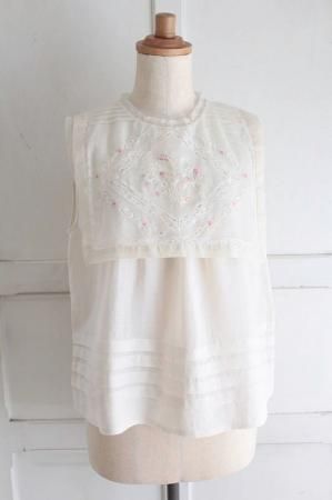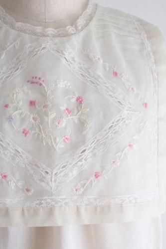 胸元にはマーガレットやカラフルなお花の刺繍と