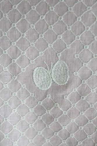 メロンの編目模様と蝶々の刺繍が魅力的です。