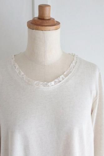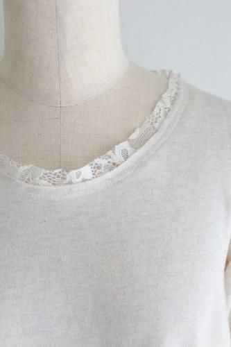 切りっぱなしの首周りのレースに