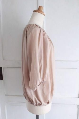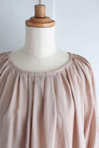首周りと裾にはタック、袖口には細かいギャザーが施され
