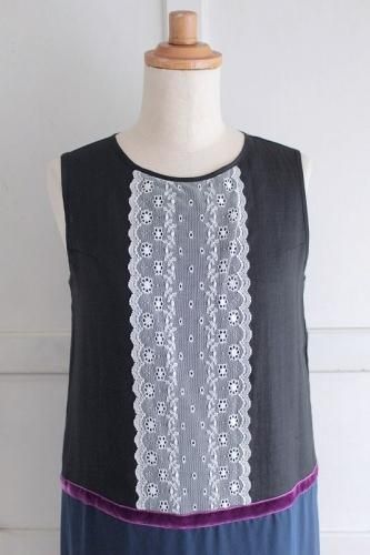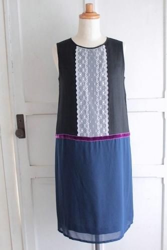 スカート部分にはネイビーのシフォン生地が重ねられ