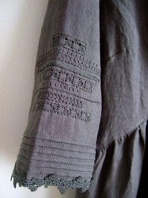 胸元の大きく開いたVラインですっきりとしたデザインです。デニムやレギンスとの重ね着コーディネートもおススメです。ブーツとの相性も◎袖口のお花の刺繍とレースがポイント!!左サイドファスナー付き。