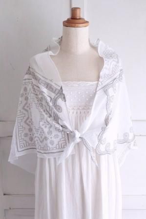 刺繍やプリントが目を惹くとっても素敵なショールです。