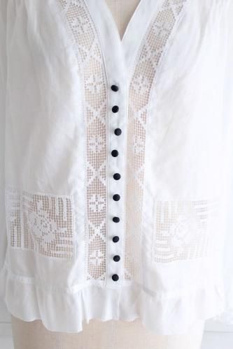 白ベースで控えめなデザインに考えられたnesessaire blouse。