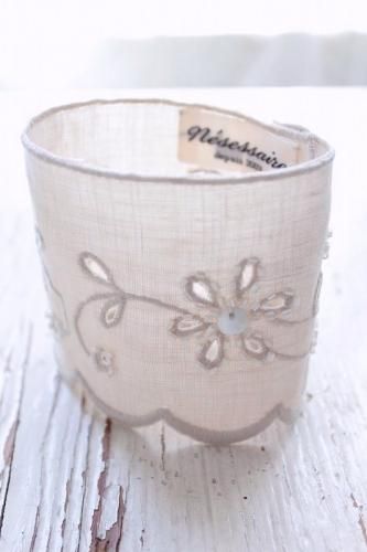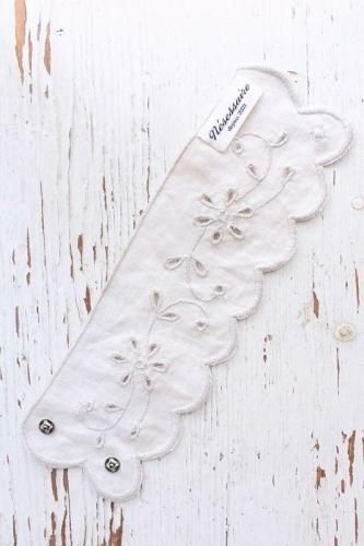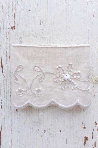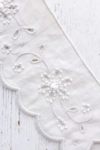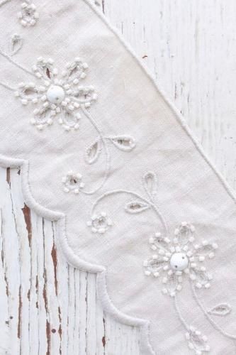 リネン生地に手刺繍で施された