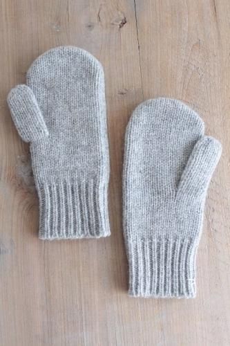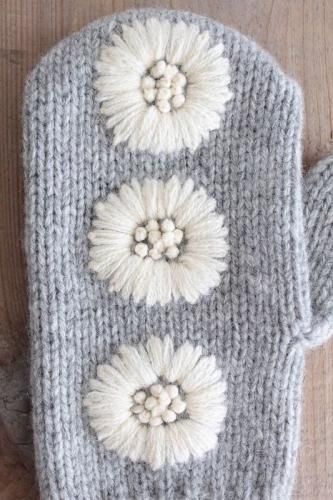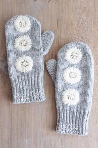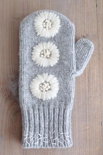 nesessaire フラワーハンド刺繍ランダムステッチミトンGY×WH