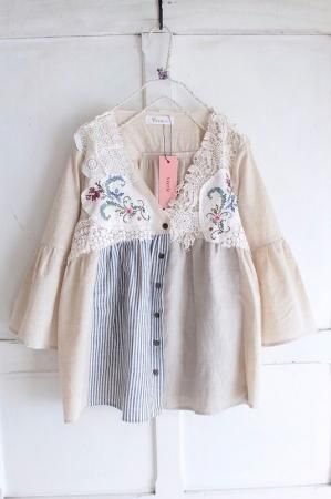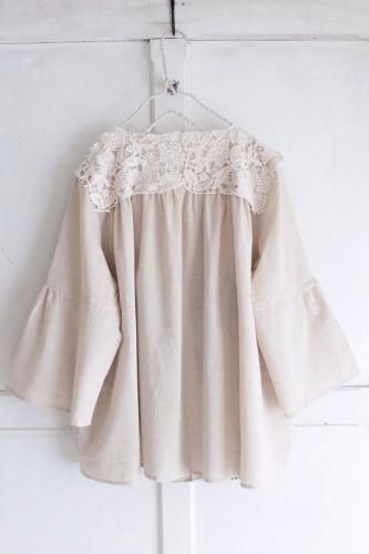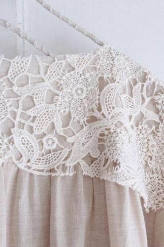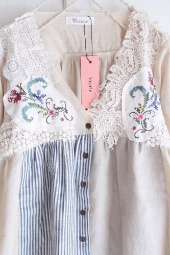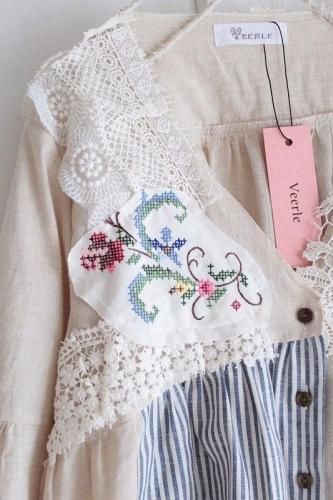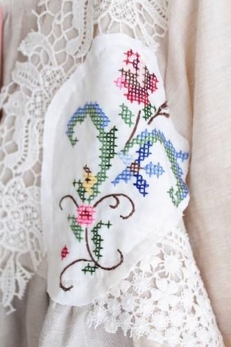 目を惹く胸元のクロスステッチ刺繍モチーフと