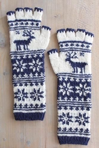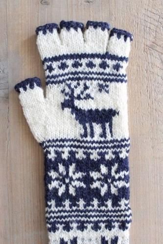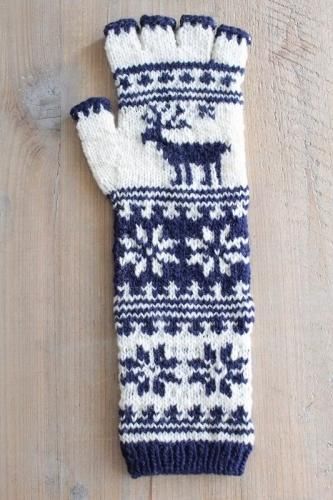 シカと雪の結晶の飾り編み模様が魅力的です。