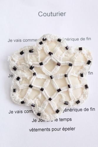 nesessaire アンティークレースパーツビーズ刺繍ブローチIV
