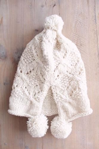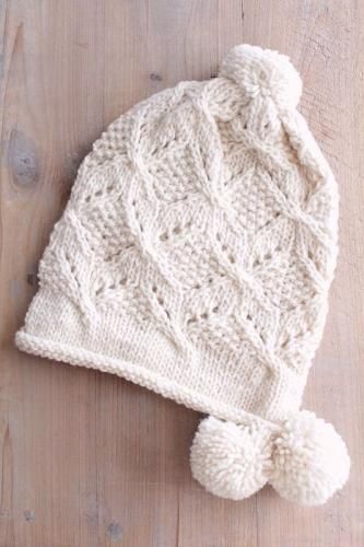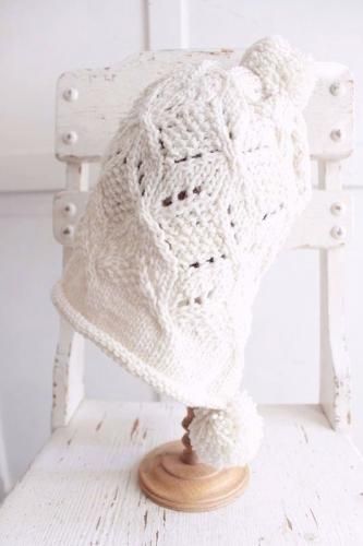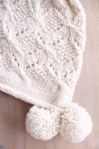 頭のてっぺんと耳の下で揺れるボンボンがアクセント。