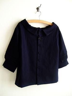 首元が少し開きのあるブラウスです。袖のタックやボタンの2段目にかわいいリボン、とこだわりのあるデザインです。 ボタンを後ろにして、すっきりブラウスで。またボタンを前にしてジャケット風に。前後着て頂ける2つの顔を持つ、ちょぴりお得なブラウスです。