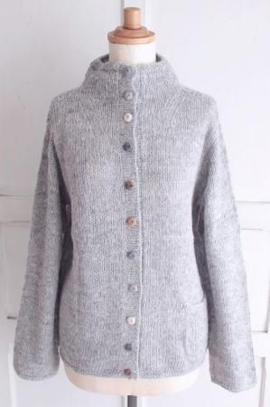 【made in Peru】ナチュラルボタンボトルネックカーディガンGY