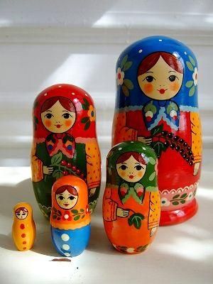 素材 木製、 サイズ 直径25cm×15.5cm(一番大きいマト)、入れ子5コセット。 ロシア製。