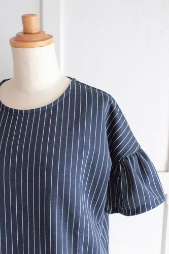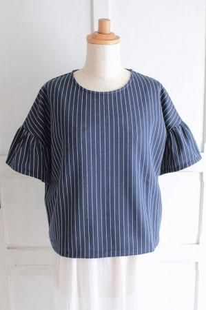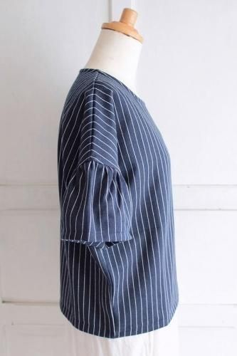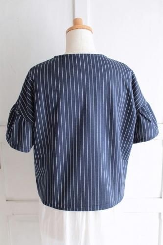 color ネイビー×オフホワイト 素材 コットン55%、ポリエステル45% made in Japan size M 着丈53cm、バスト106cm 袖丈28cm、肩幅38cm